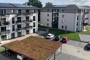Der Wohnpark in Barmstedt hat als erstes Projekt Carports mit Gründach erhalten, weitere folgen auch in Schlutup.