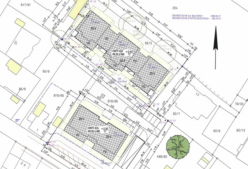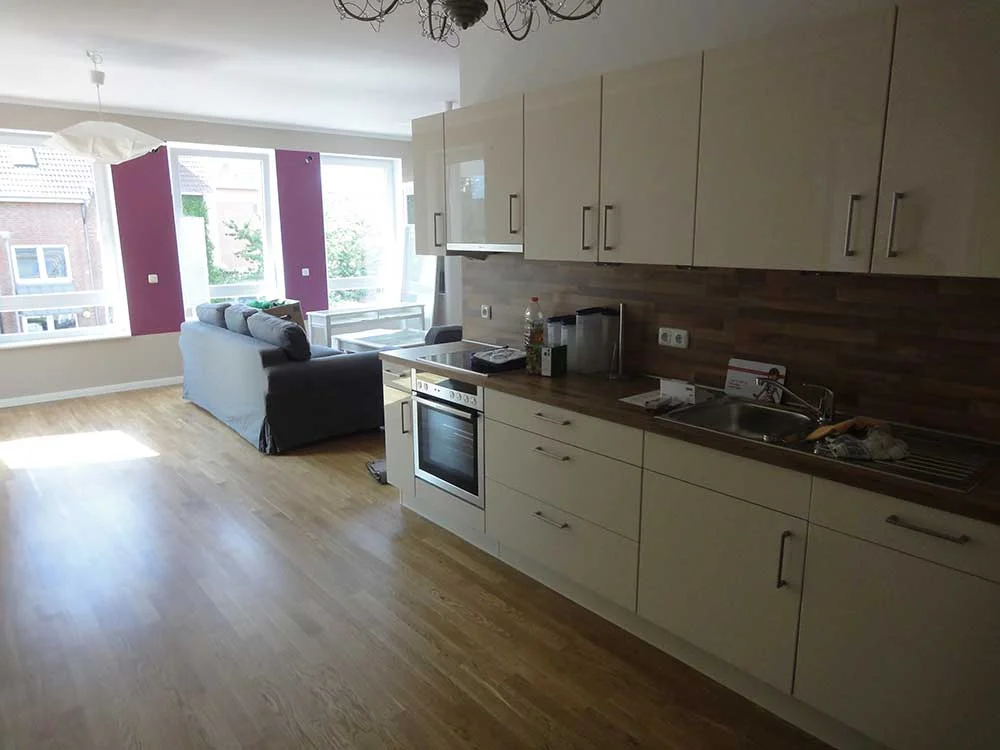 Zentrumsnah ist ein Wohn- und Geschäftsgebäude mit 31 ETW und Gewerbe entstanden, ausgestattet mit Aufzügen und Tiefgarage.
