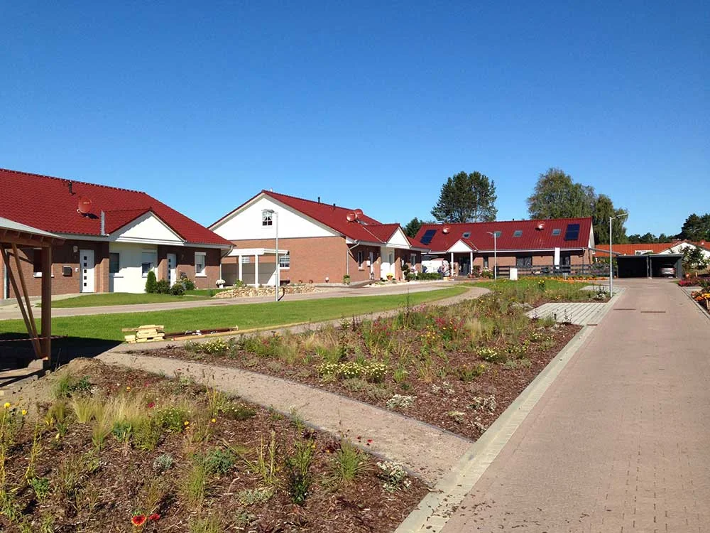 In idyllischer Lage bei Lüneburg ist eine Wohnanlage mit 10 Doppelhäusern und einem Einzelhaus für die Generation 50 plus entstanden.